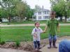 Erick admiring the grape hyacinth he picked at Gaga's.